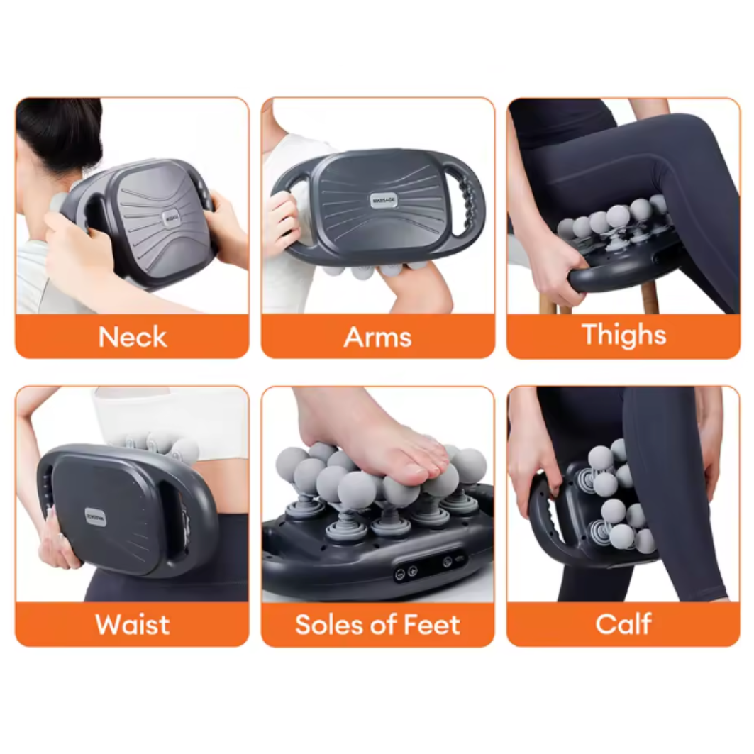 Med flera utbytbara massagehuvuden kan du anpassa behandlingen efter olika muskelgrupper och behov. Intensiteten justeras enkelt så att massagen känns effektiv utan att bli för hård.